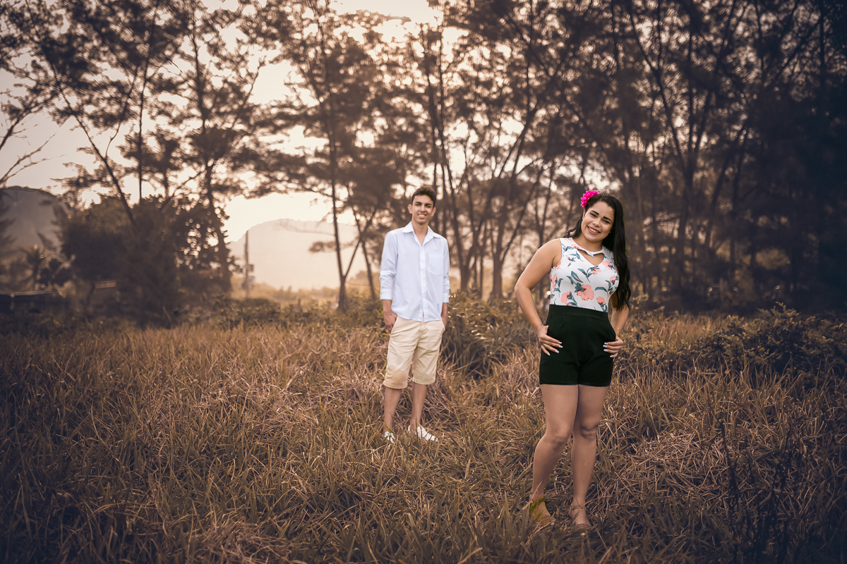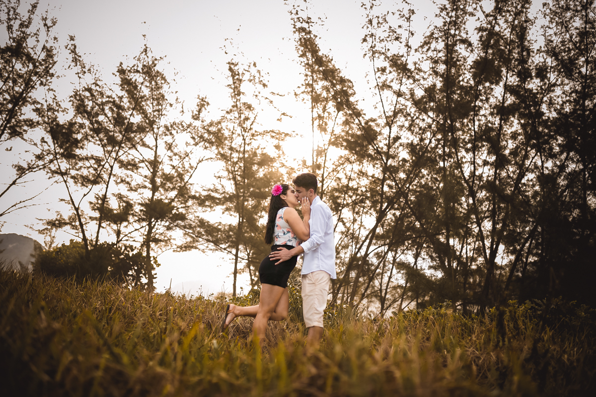 Ensaio pré-Casamento externo com árvores ao fundo em Grumari/RJ