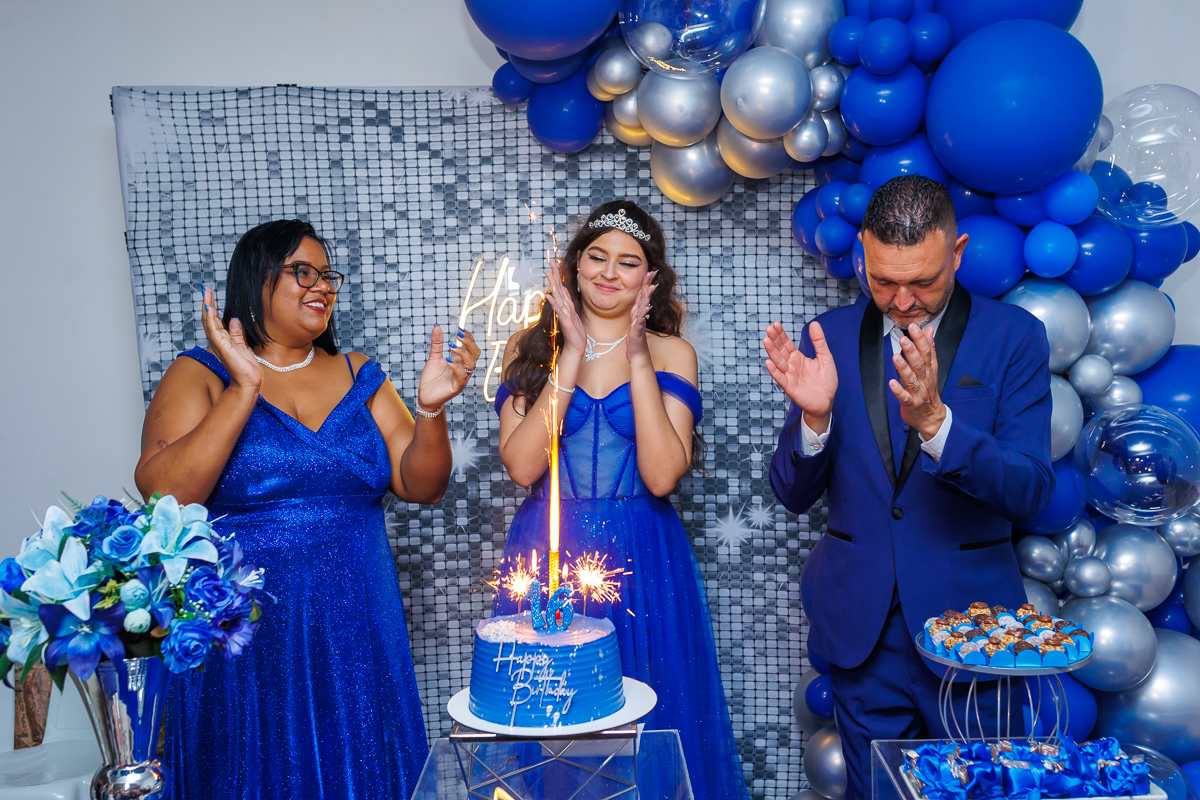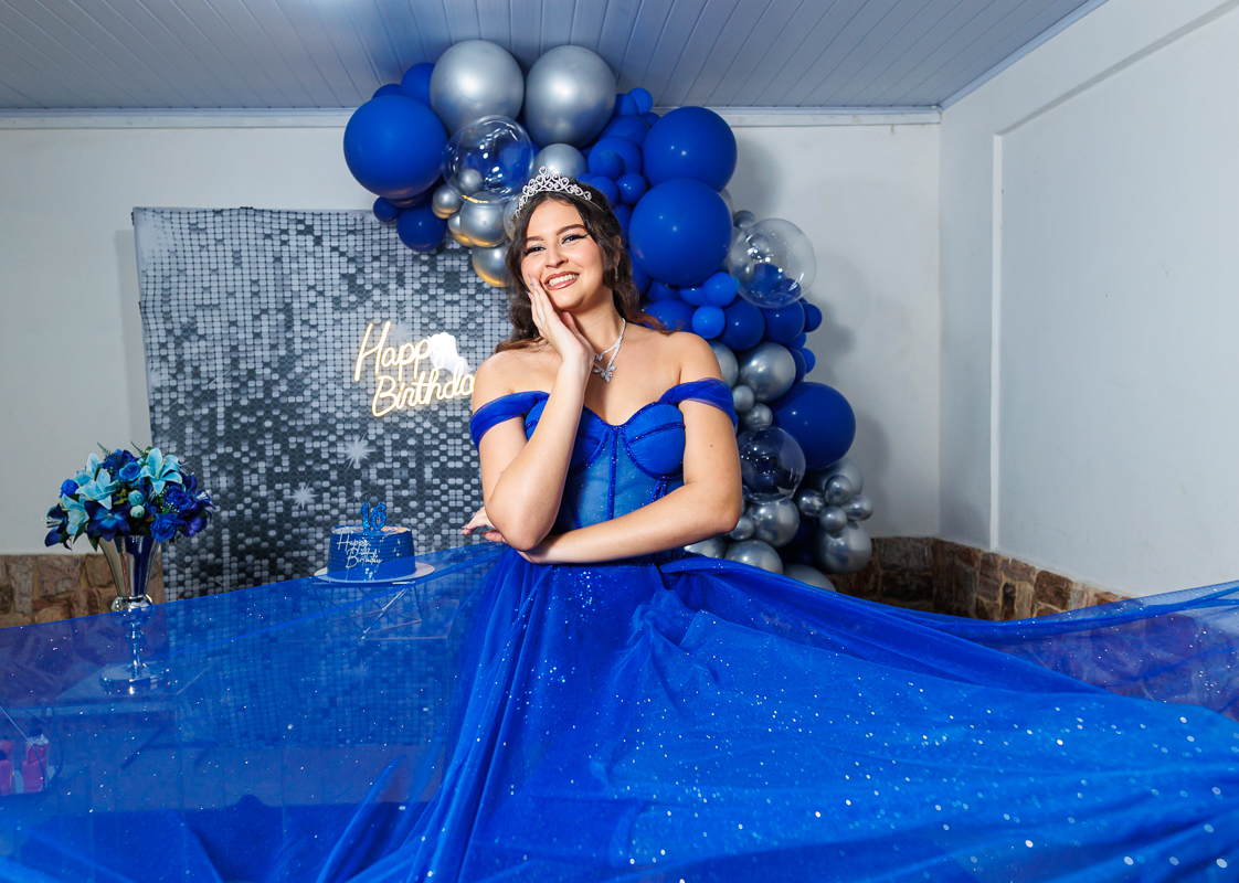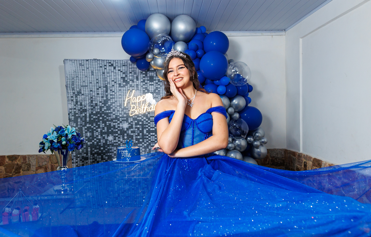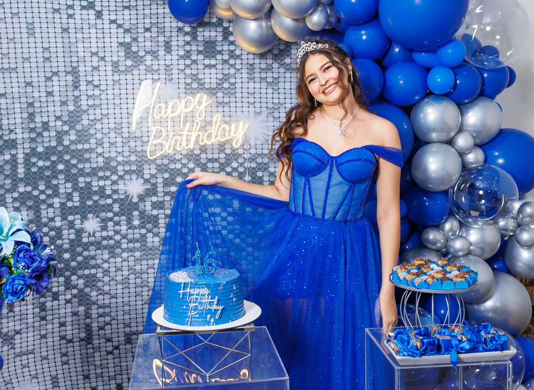A sua festa está um verdadeiro sonho em tons de azul — e você, como sempre, é o destaque mais brilhante de todos!